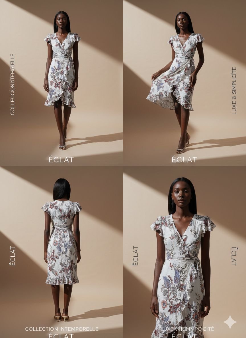 La robe ÉCLAT incarne le parfait équilibre entre luxe et simplicité. Confectionnée dans un tissu léger et fluide, elle séduit par son imprimé floral raffiné, aux nuances douces et naturelles, idéal pour sublimer la silhouette avec délicatesse.